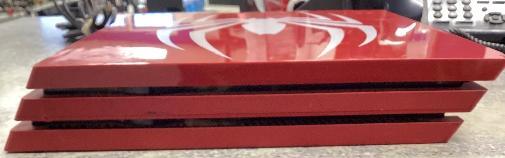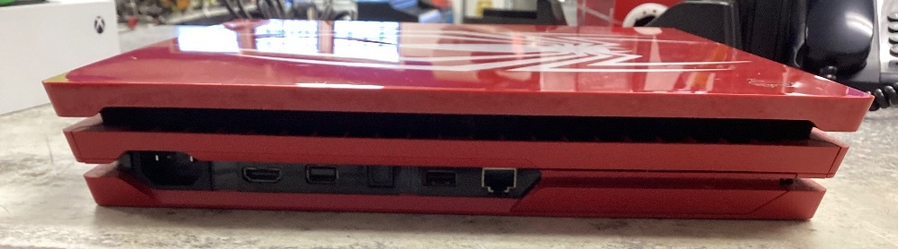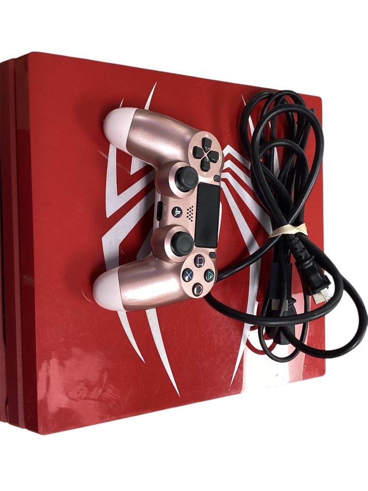 Unleash your gaming prowess with Sony's dazzling Red PS4 Pro. Boasting a massive 1TB storage, this beast comes with all essential cords, ready to plug and play. Adding a cherry in top, a chic pink controller radiates a perfect blend of style and gaming exhilaration. Game on!