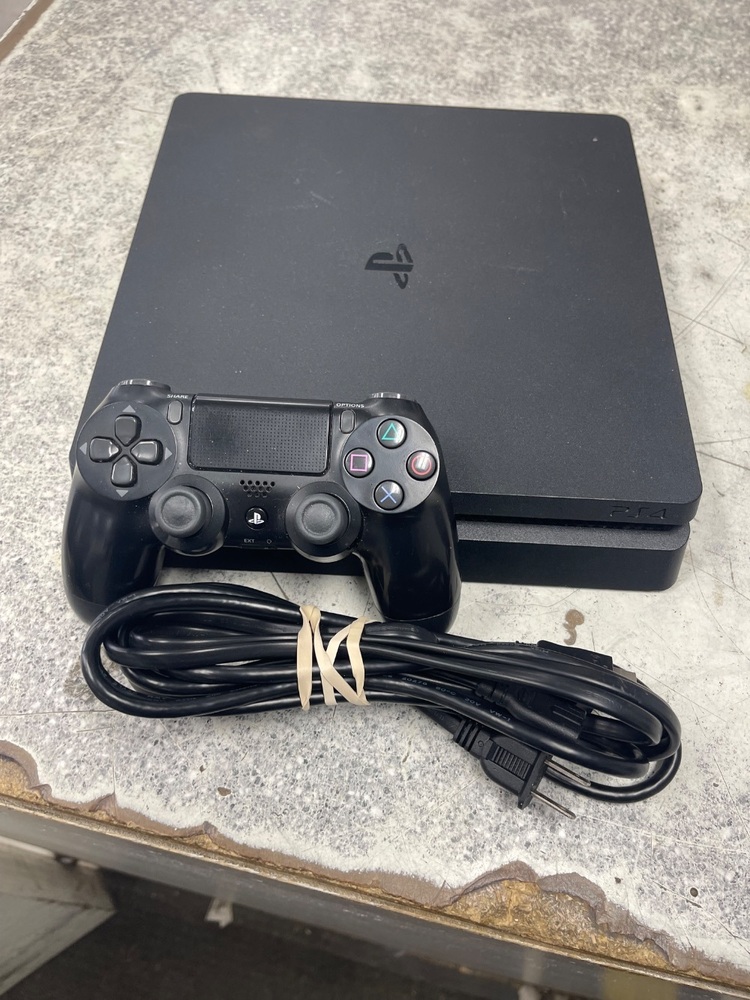 For sale: Sony PS4 Slim. Comes with all necessary cords and one controller. Perfect for avid gamers or casual players. Sleek design, superior performance. A must-have for entertainment seekers