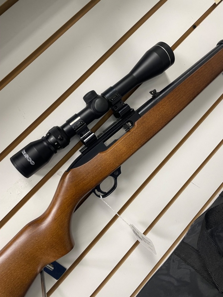 Log#22094 STURM , RUGER &CO., INC. Rifle Semi Auto .22 LR Cal. 10/22 CARBINE WOOD-STOCK ONE MAG VINTAGE 10/22 W/ TASCO 3-9X40 SCOPE.
