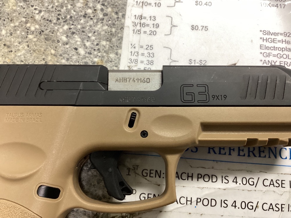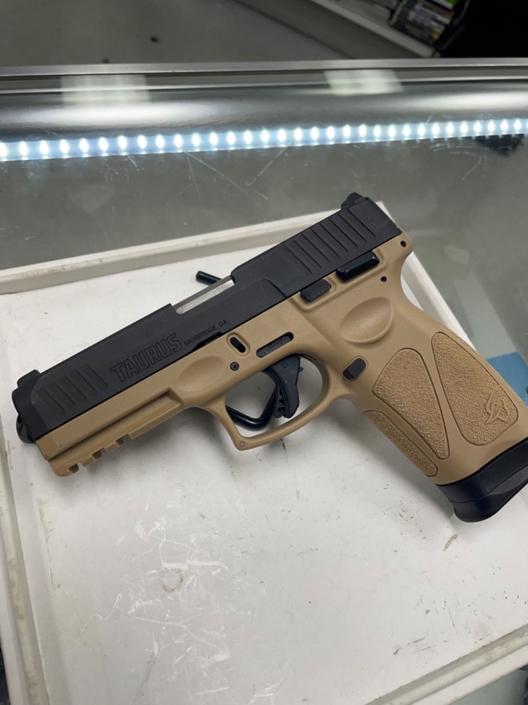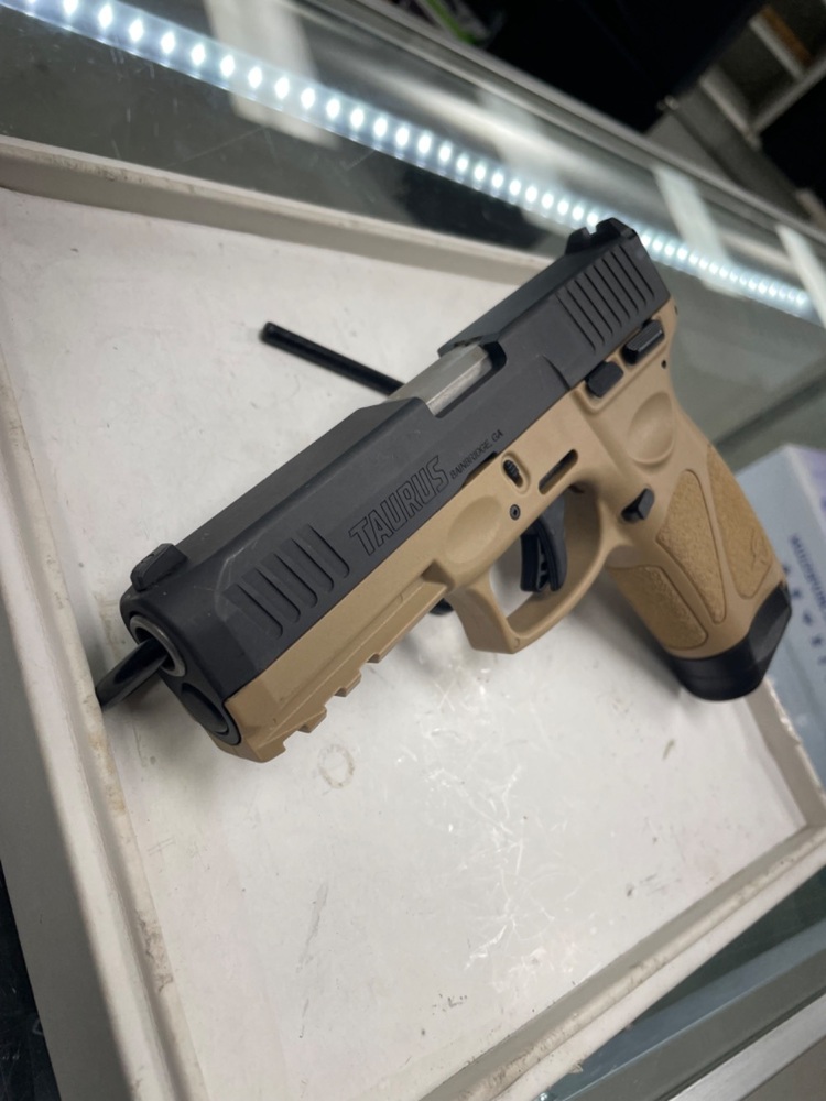 Log#22202 Taurus Armas Pistol Semi Auto 9X19MM Cal. g3 black slide and peanut butter brown FRAME one mag no box
