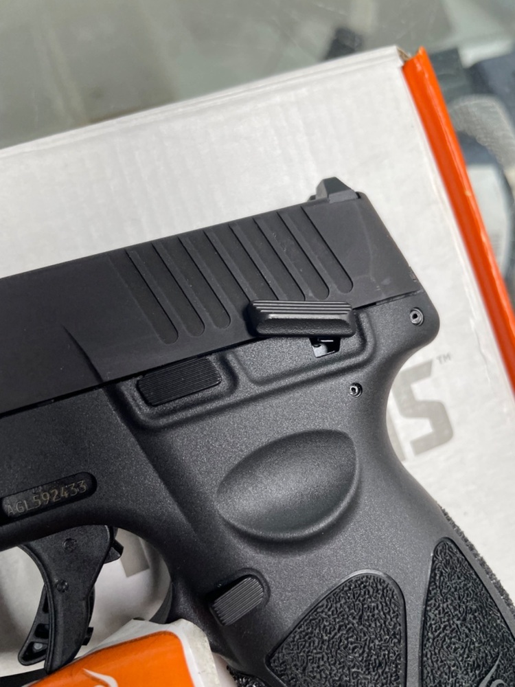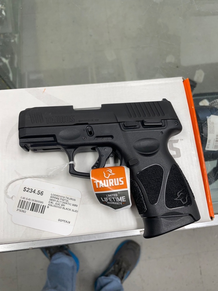Log#21619: Oh, call it a fashion statement! The Taurus Armas Pistol Semi-Auto 9MM Cal G3C. She's all dressed in black from slide to frame! SN: AGL592433. Comes with two 'fashion magazines'. Still in box...cuz she's that new!