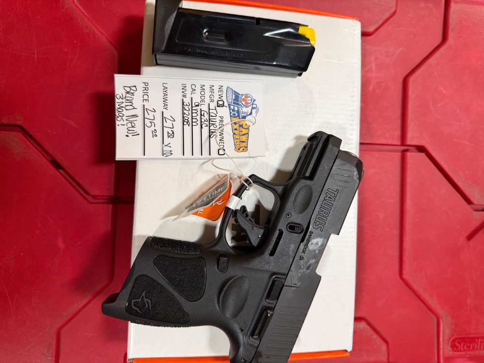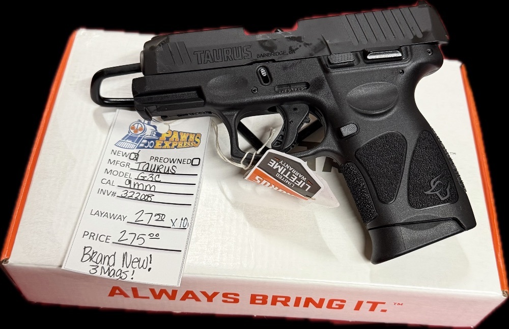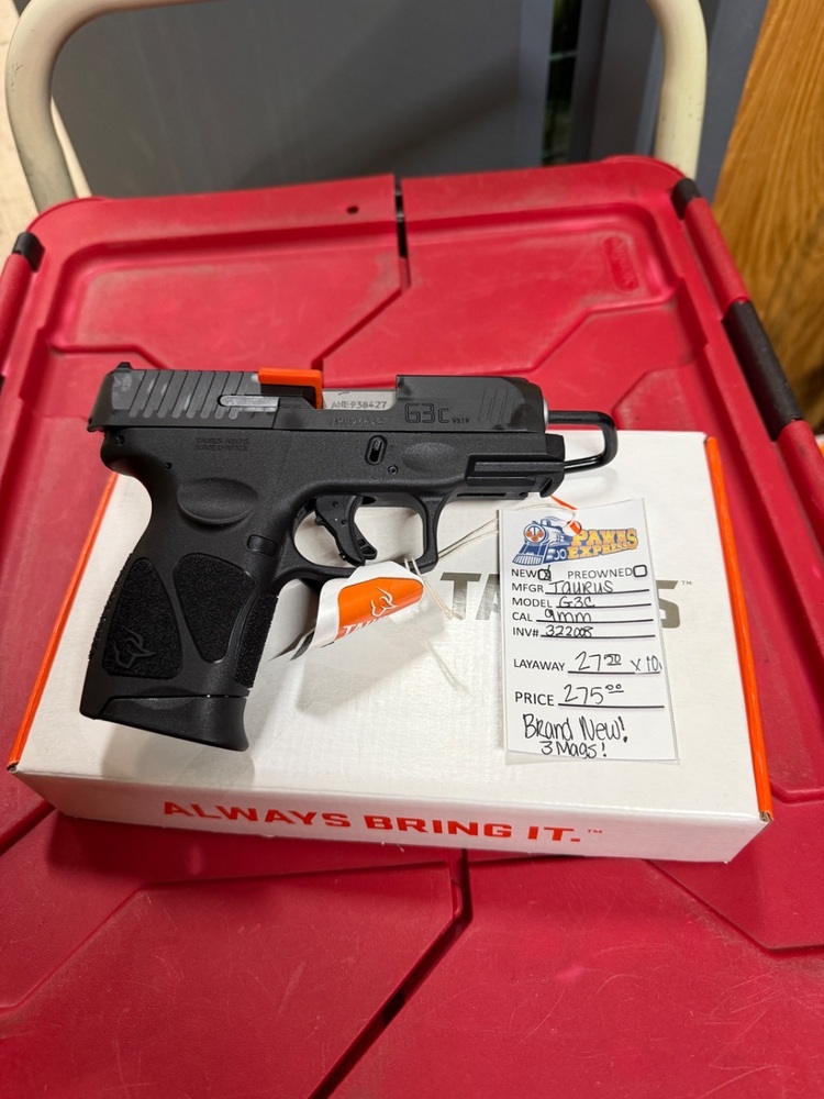 Introducing the latest marvel from Taurus Armas: The G3C Semi Auto 9MM Pistol. Adorned with an elegant black slide and frame, this firearm gleams with unmatched allure. With serial number AHE938427, this brand new in box (NIB) piece makes a dynamic addition to any collection. Experience an unrivaled balance of power and precision, engulfed in a seductively dark finish.