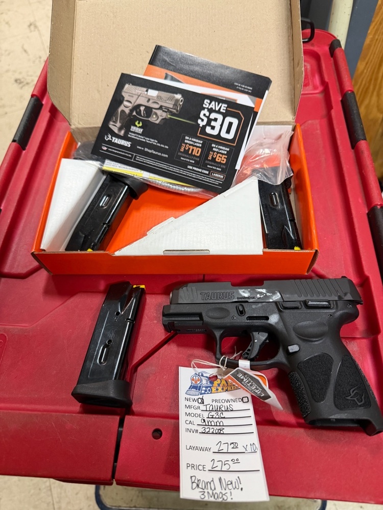 Log#22451 Taurus Armas Pistol Semi Auto 9MM Cal. G3C BLACK SLIDE BLACK FRAMENIB New