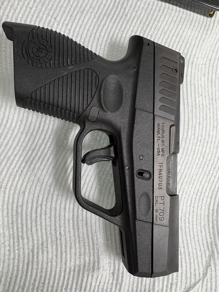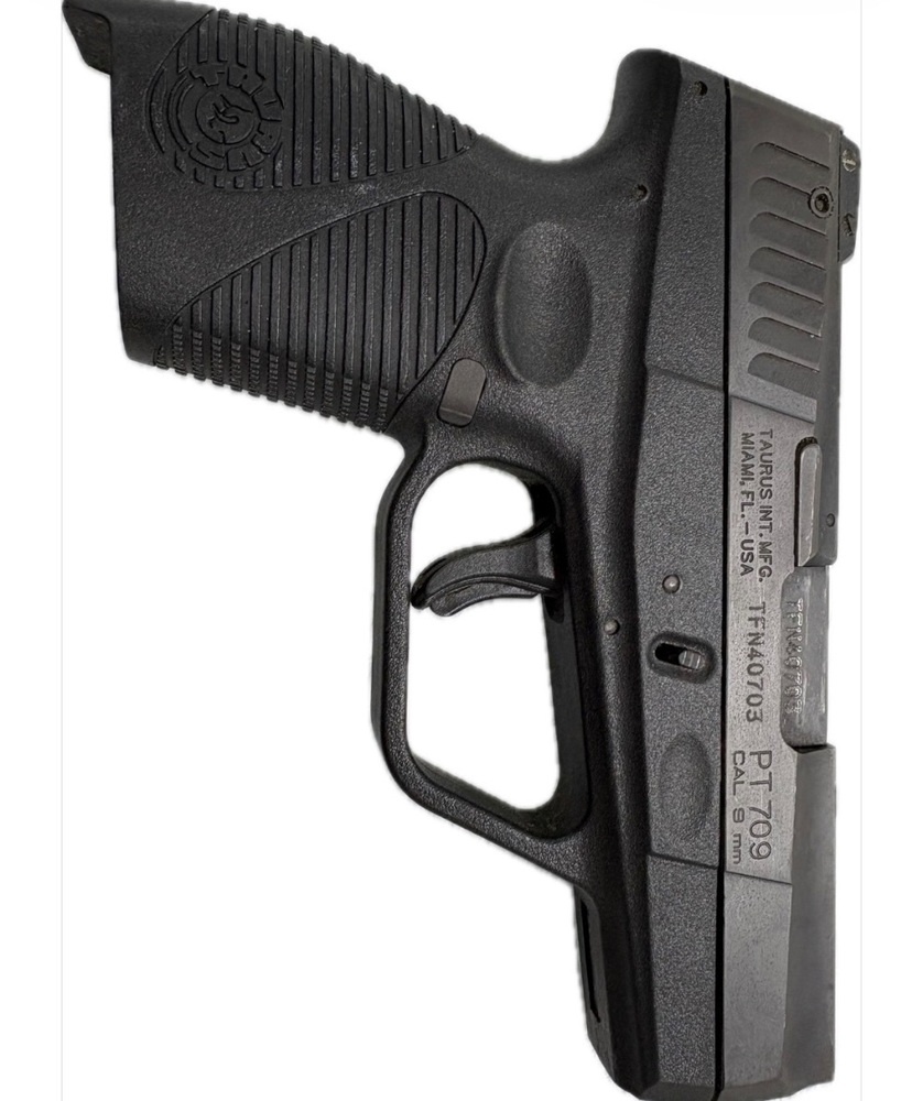 The Taurus Brazil PT709 Slim, a sleek semi-automatic 9MM pistol, offers exceptional concealed carry comfort. Featuring a compact, black-on-black design, it comes with one magazine. Its additional thumb safety feature ensures secure handling. Designed for precision, reliability, and user safety, it's an excellent choice for personal defense. MUST BE 21 YEARS OF AGE OR OLDER WITH VALID ALABAMA ID AND MUST BE ABLE TO PASS A FEDERAL BACKGROUND CHECK