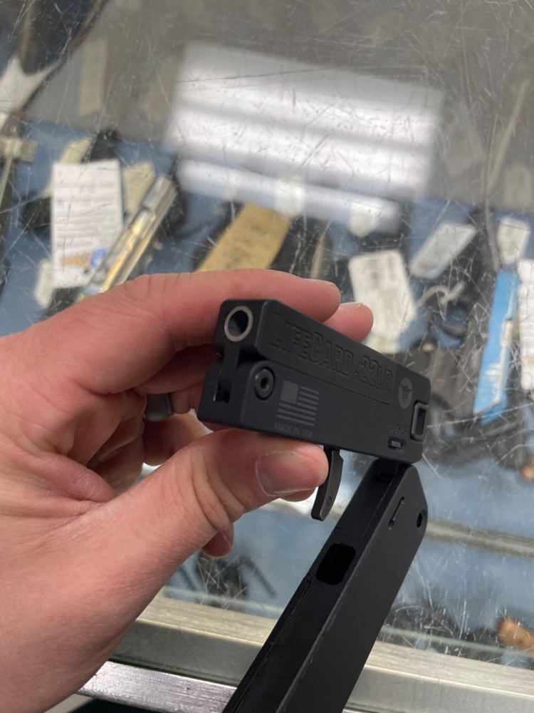 Discover the striking blend of convenience and power in the Trailblazer Firearms hand-crafted, Break-Action .22 LR Cal. LIFECARD Pistol. With its ingenious, compact design, it hides in your wallet but roars on the range. Ideal for discreet enthusiasts, Serial No: 40515 guarantees a unique, brain-teasing shooting experience. |