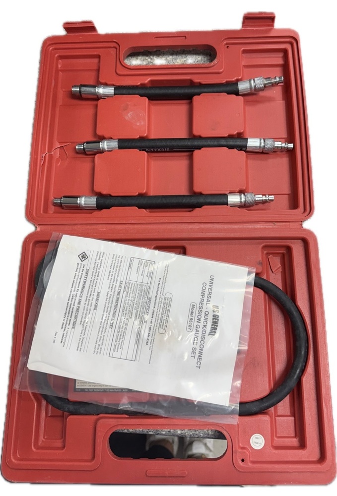 Behold the US General Universal Quick/Disconnect Compression Gauge Set! Crafted for the perfectionist, this set features an array of top-tier tools. Ready to conquer any task, this powerhouse set boasts stellar precision, making compression testing a breeze. Each piece reveals strong, durable construction that will stand the test of time. This set's quick disconnect feature guarantees smooth & speedy transitions. So why wait? Elevate your tool game and unveil the true craftsman in you with this versatile compression gauge set.