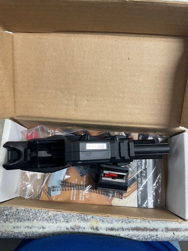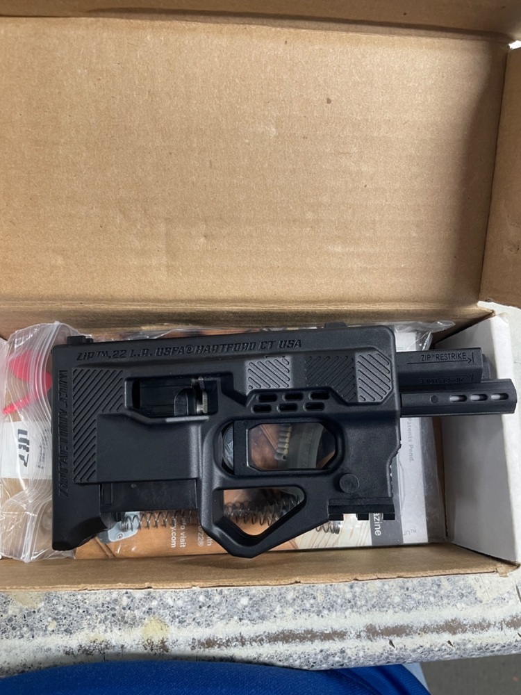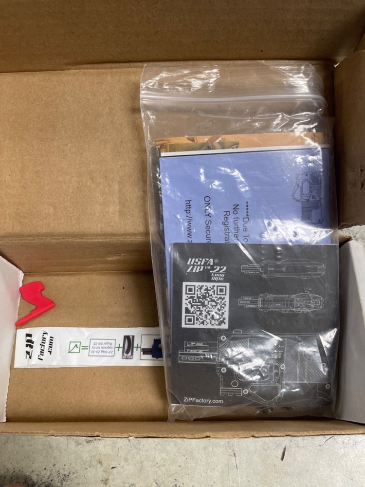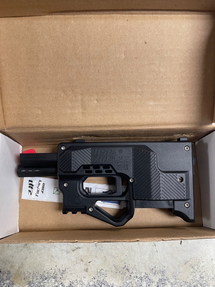 Log#20849: Behold the semi-auto USFA Pistol. Feisty .22 LR Cal, AAL360 called ZIP GUN. It's got swagger, a 10 round mag, a BX-25 mag, all snug in a mystery brown box. Now THAT'S a party in a box. Limit: 50 words, humour status: Charged!