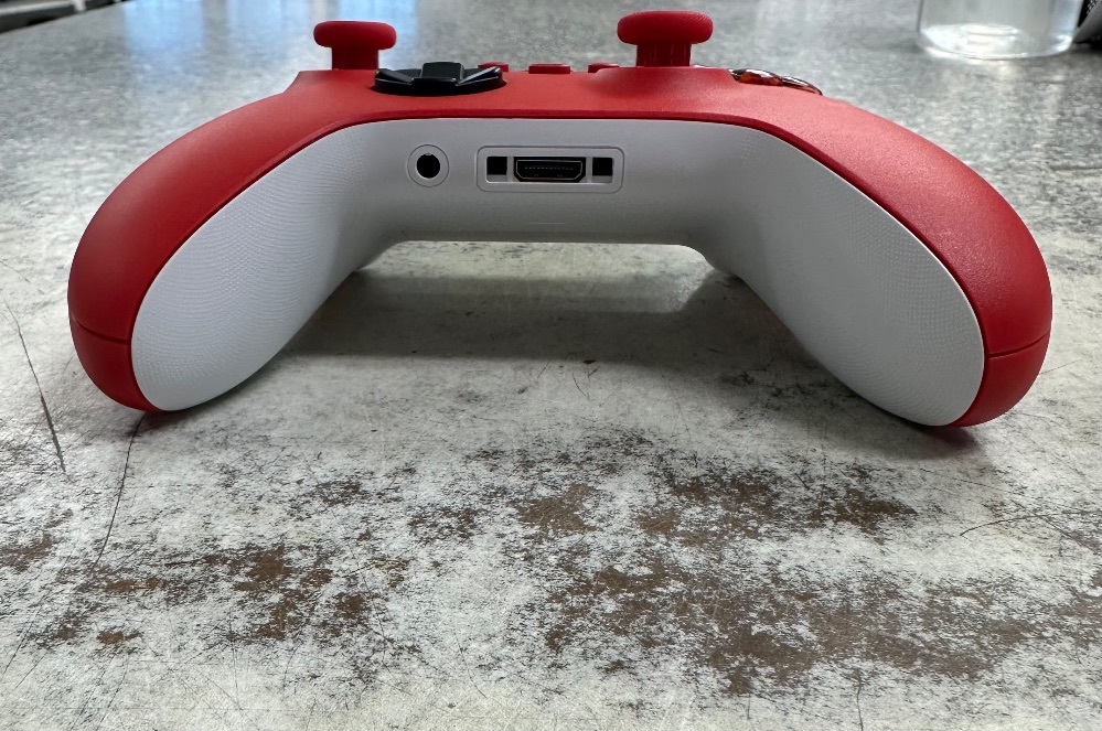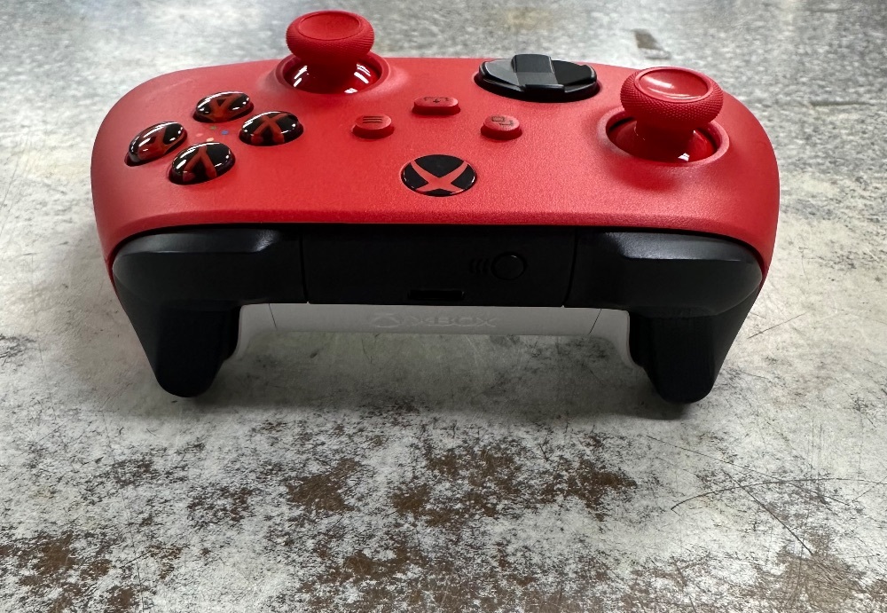 This red and white Xbox One controller delivers a bold, sporty look with smooth contours for comfortable gaming. Its responsive analog sticks, precise triggers, and textured grip enhance control during intense play. Featuring wireless connectivity, a 3.5mm audio jack, and seamless compatibility with Xbox One and Windows devices, it combines style and performance in a striking, reliable design.