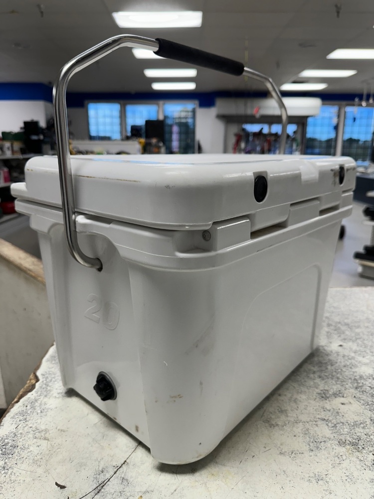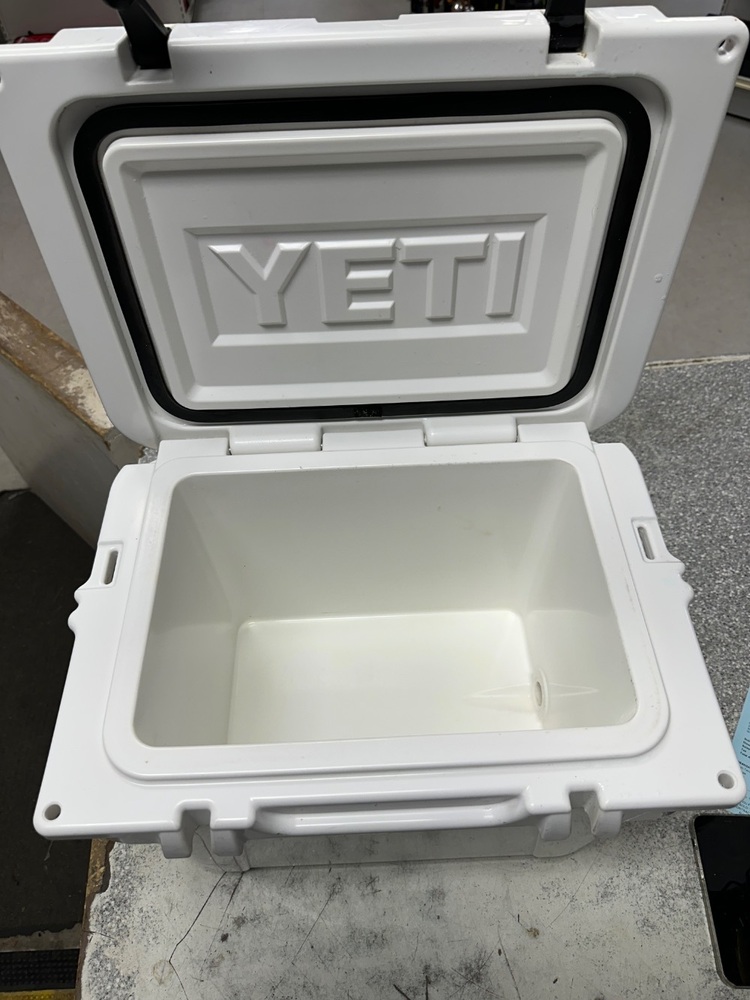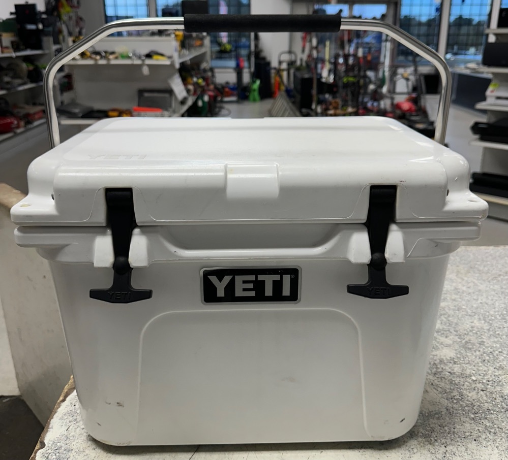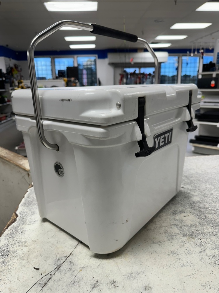 The YETI Roadie 20 Cooler in White is a compact, rugged cooler built for adventure. Made with durable rotomolded construction and PermaFrost insulation, it delivers outstanding ice retention in a portable size. The clean white finish looks sharp while reflecting heat outdoors. Features include a comfortable HeftyHauler handle, BearFoot non-slip feet, and a tight-sealing ColdLock gasket to lock in cold. Ideal for road trips, fishing, camping, or tailgating, the Roadie 20 holds up to 14 cans with ice, making it a reliable companion for any day out.